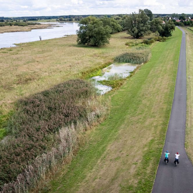 Im Jahre 1701 war das gewaltige Werk vollendet. Die sumpfigen Niederungen waren in fruchtbares Land verwandelt und gaben der Flusslandschaft ihre heutige Gestalt. So eröffnen sich heute während der Radtour vom immer noch existierenden Deich traumhafte Blicke auf die Oder und ihre Auenlandschaften.