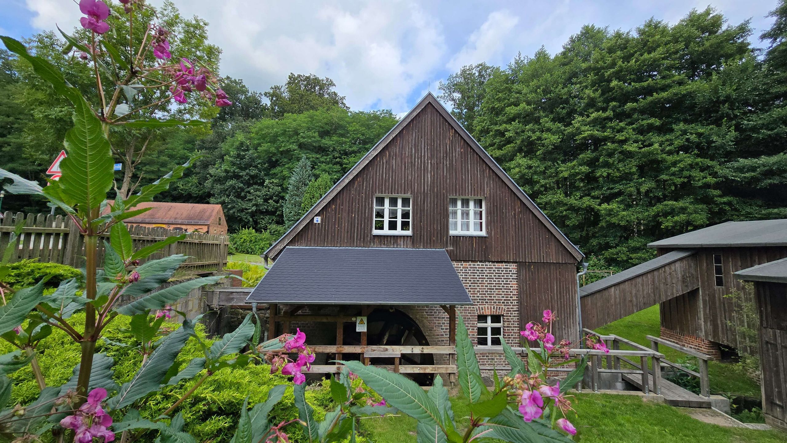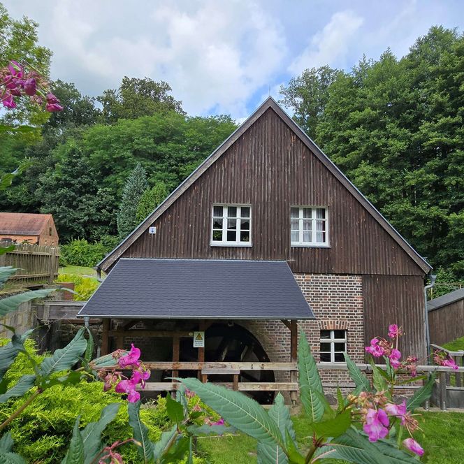 Sie leiteten den Bach um und stauten zwei Mühlteiche auf. Deren Ufer laden heute zu einem Spaziergang mit herrlichem Blick auf die Mühle ein, im Regionalladen gibt es neben Durstlöschern leckeres, ofenfrisches Mühlenbrot.